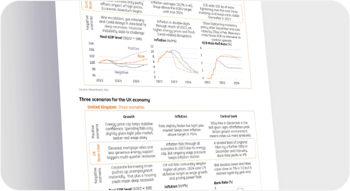 ING global economic outlook 2023 December 2022 Three scenarios for the eurozone economy Source: Macrobond, ING Three scenarios for the UK economy Source: Macrobond, ING