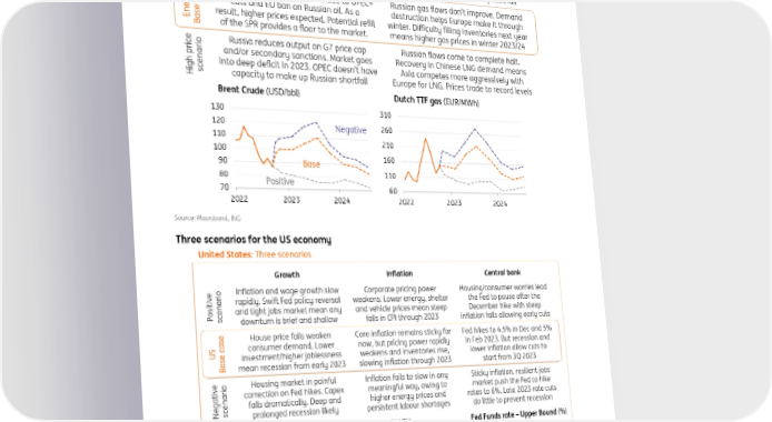 ING Global Economic Outlook 2023 Page 7 Page 9ING global economic outlook 2023 December 2022 Three scenarios for energy prices Source: Macrobond, ING Three scenarios for the US economy Source: Macrobond, ING
