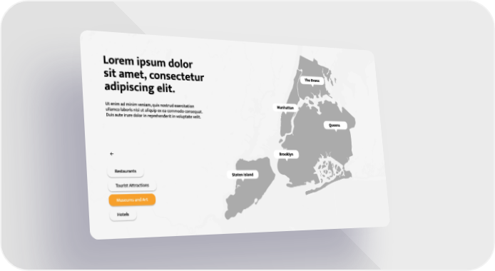 Lorem ipsum dolor The Bronx sit amet, consectetur adipiscing elit. Manhattan Ut enim ad minim veniam, quis nostrud exercitation ullamco laboris nisi ut aliquip ex ea commodo consequat. Duis aute irure dolor in reprehenderit in voluptate velit. Queens Brooklyn <- RReessttaauurraannttss Staten Island TToouurriisstt AAttttrraaccttiioonnss MMuusseeuummss aanndd AArrtt HHootteellss