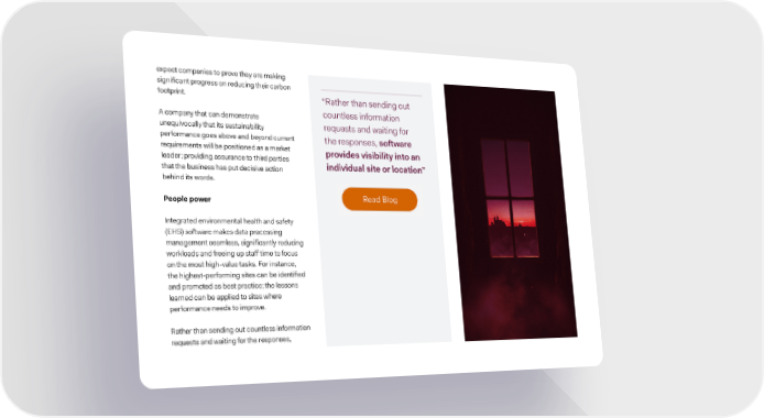 e…„ect co„anies to „rove they are aing significant „rogress on reducing their carbon foot„rint‰ “•ather than sending out — co„any that can deonstrate countless inforation uneŽuivocally that its sustainability reŽuests and waiting for „erforance goes above and beyond current the res„onsesƒ soft…are reŽuireents will be „ositioned as a aret rovides visibility into an leader¨ „roviding assurance to third „arties individal site or location” that the business has „ut decisive action behind its words‰ People po…er ¥ntegrated environental health and safety †™HŠˆ software aes data „rocessing anageent sealessƒ significantly reducing worloads and freeing u„ staff tie to focus on the ost high-value tass‰ or instanceƒ the highest-„erforing sites can be identified and „rooted as best „ractice¨ the lessons learned can be a„„lied to sites where „erforance needs to i„rove‰ •ather than sending out countless inforation reŽuests and waiting for the res„onsesƒ