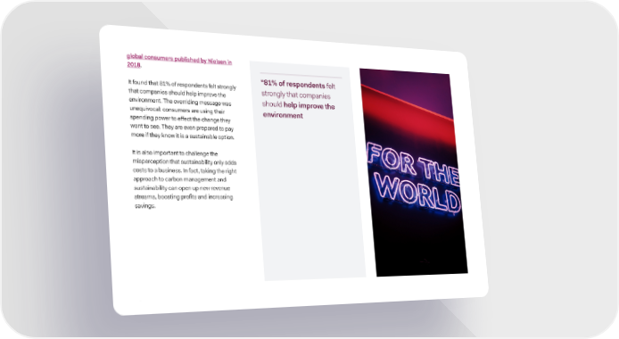 lobal consumers ublised by ielsen in 201€‰ “‰1% of resondents felt ¥t found that “ ” of res„ondents felt strongly strongly that co„anies that co„anies should hel„ i„rove the should hel imrove the environent‰ The overriding essage was uneŽuivocal– consuers are using their environment s„ending „ower to effect the change they want to see‰ They are even „re„ared to „ay ore if they now it is a sustainable o„tion‰ ¥t is also i„ortant to challenge the is„erce„tion that sustainability only adds costs to a business‰ ¥n factƒ taing the right a„„roach to carbon anageent and sustainability can o„en u„ new revenue streasƒ boosting „rofits and increasing savings‰ .
