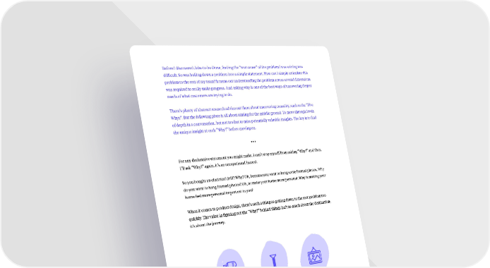 Before I discovered Jobs-to-be-Done, finding the “root cause” of the problem I was solving was difficult. So was boiling down a problem into a simple statement. How can I simply articulate this problem to the rest of my team? It turns out understanding the problem across several dimensions was required to really make progress. And asking why is one of the best ways of uncovering deeper needs of what customers are trying to do. There’s plenty of abstract research advice out there about uncovering causality, such as the “Five Whys”. But the following piece is all about aiming for the middle ground. To move through levels of depth in a conversation, but not too fast to miss potentially valuable insights. The key is to find the unique insight at each “Why?” before moving on. • • • For any declarative statement you might make, I can’t stop myself from asking “Why?” and then, I’ll ask “Why?” again. It’s an occupational hazard. So you bought an electrical drill? Why? Oh, because you want to hang some framed photos. Why do you want to hang framed photos? Oh, to make your home more personal. Why is making your home feel more personal important to you? When it comes to product design, there’s such a thing as getting down to the root problem too quickly. The value in figuring out the “Why?” behind things isn’t so much about the destination; it’s about the journey. This is especially true for customer interviews. Slowing down, taking your time with each layer of the “Why?”, exploring lots of different ideas together; it all makes your time together much more productive. And it yields far more interesting and usable insights. The productive layers of the conversation For any given behavior, you can dig as deep as you want. There are as many layers as you have time to discuss, each one relating to a deeper need. A deeper understanding of “Why?” 45