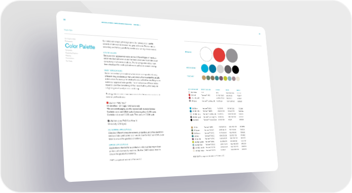 60 JOHNSON & JOHNSON CORPORATE DESIGN STANDARDS VERSION 2.1 61 Graphic Style Our Graphic Style Our colors are simple, yet recognizable. Our primary color palette Photography consists of Johnson & Johnson red, gray and white. There is also a Color Palette secondary and tertiary palette to provide color variety where needed. PRIMARY Typography COLOR VALUES Supporting Graphics Because color appearance varies across different types of media, a Websites set of standardized color values has been developed to enable visual Presentations consistency in all communications. The following color values have Our Credo been developed for print applications as well as on-screen viewing. SECONDARY PRINT APPLICATIONS Some inconsistency is inevitable when colors are reproduced using TERTIARY different inks, processes, printers, and media. It is important to visually match colors for every print initiative to ensure that the resulting colors match our approved color palette. The effectiveness of these colors depends upon the consistency of their reproduction, which requires a high degree of quality in color matching. COLOR NAME SPOT COLOR CMYK RGB HEX# J&J white N/A N/A 255/255/255 FFFFFF ® 185C 0/100/100/0 243/6/23 F30617 Printing color densities have been established to maintain consistent J&J red Pantone color on print materials: J&J red (web) N/A 5/100/71/22 180/22/1 B41601 ® Cool Gray 8C 0/0/0/50 130/130/130 828282 J&J gray Pantone J&J red: PMS 185C* Ink densities: 1.51 (logo), 1.42 (solid red) ® *On uncoated paper, use the custom ink formula below: J&J blue Pantone 306C 75/0/0/0 18/194/233 12C2E9 ® 7468C 100/0/0/30 10/140/170 0A8CAA Coatable warm red: 0.522 parts; Coatable yellow: 0.249 parts; J&J dark blue Pantone ® Cool Gray 3C 0/0/0/15 229/229/229 E5E5E5 Coatable rubine red: 0.228 parts; Total amount: 0.999 parts J&J light gray Pantone ® Cool Gray 11C 0/0/0/75 100/100/100 646464 J&J dark gray Pantone ® Process Black 0/0/0/100 0/0/0 000000 J&J dark gray: PMS Cool Gray 11 J&J black Pantone Ink density: 0.75 (type) ® ON-SCREEN APPLICATIONS J&J tan Pantone 465C 20/30/60/0 188/159/109 BC9F6D ® 5555C 30/0/35/40 115/140/90 738C5A Likewise, different computer screens, projectors, and other electronic J&J green Pantone ® 7531C 0/10/30/50 125/110/60 7D6E3C media will also yield varied color results. Use the RGB or HEX# values J&J brown Pantone ® 5483C 60/0/20/30 63/150/158 3F969E listed to ensure the greatest consistency. J&J teal Pantone ® 5205C 55/65/40/0 133/100/102 856466 J&J purple Pantone ® 583C 15/0/92/10 204/207/50 CCCF32 OFFICE APPLICATIONS J&J light green Pantone ® 5503C 30/0/10/15 152/195/200 98C3C8 Applications intended to be printed on individual desktop or laser J&J light teal Pantone ® 5215C 30/35/25/0 185/160/170 B9A0AA printers will also vary by machine. Use the CMYK values listed to J&J light purple Pantone ® 7527C 0/2/8/7 236/229/213 ECE5D5 ensure the greatest consistency. J&J light beige Pantone ® PANTONE® is a registered trademark of Pantone, LLC. PMS is a registered trademark of Pantone, LLC.
