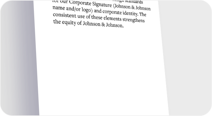 JOHNSON & JOHNSON CORPORATE DESIGN STANDARDS VERSION 2.1 i This document outlines the design standards for our Corporate Signature (Johnson & Johnson name and/or logo) and corporate identity. The consistent use of these elements strengthens the equity of Johnson & Johnson. For more information on approval processes and contact information please see the following page.