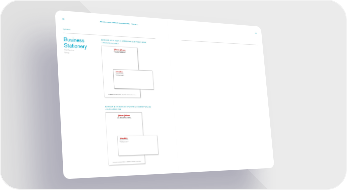 48 JOHNSON & JOHNSON CORPORATE DESIGN STANDARDS VERSION 2.1 49 Applications Business JOHNSON & JOHNSON IN OPERATING COMPANY’S NAME —SINGLE-LANGUAGE Stationery OPCO FULL LEGAL NAME / DIVISION NAME Email Signatures DIVISION OF [OPCO FULL LEGAL NAME] (IF REQUIRED) Signage OPCO FULL LEGAL NAME / DIVISION NAME DIVISION OF [OPCO FULL LEGAL NAME] (IF REQUIRED) 12345 Anystreet Drive, Anytown, ST 00000 USA Secondary Address Line if Necessary 12345 Anystreet Drive, Suite 000, Anytown, ST 00000 USA T: +0 000 000 0000 F: +0 000 000 0000 www.companywebsite.com JOHNSON & JOHNSON IN OPERATING COMPANY’S NAME —DUAL-LANGUAGE OPCO / DIVISION NAME IN LOCAL LANGUAGE DIVISION OF [OPERATING COMPANY] (IF REQUIRED) IN LOCAL LANGUAGE OPCO / DIVISION NAME IN LOCAL LANGUAGE DIVISION OF [OPERATING COMPANY] (IF REQUIRED) IN LOCAL LANGUAGE 12345 Anystreet Drive, Anytown, ST 00000 USA Secondary Address Line if Necessary 12345 Anystreet Drive, Suite 000, Anytown, ST 00000 USA T: +0 000 000 0000 F: +0 000 000 0000 www.companywebsite.com