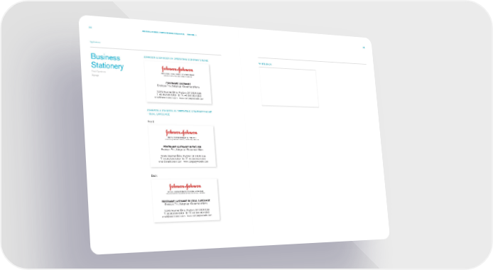 44 JOHNSON & JOHNSON CORPORATE DESIGN STANDARDS VERSION 2.1 45 Applications Business JOHNSON & JOHNSON IN OPERATING COMPANY’S NAME WHITE BACK Stationery Email Signatures OPCO FULL LEGAL NAME / DIVISION NAME DIVISION OF [OPCO FULL LEGAL NAME] (IF REQUIRED) Signage FIRSTNAME LASTNAME Employee Title, Subgroup / Department Name 12345 Anystreet Drive, Anytown, ST 00000 USA T: +0 000 000 0000 M: / F: +0 000 000 0000 [email protected] www.companywebsite.com JOHNSON & JOHNSON IN OPERATING COMPANY’S NAME —DUAL-LANGUAGE Front: OPCO / DIVISION NAME IN ENGLISH DIVISION OF [OPERATING COMPANY] (IF REQUIRED) IN ENGLISH FIRSTNAME LASTNAME IN ENGLISH Employee Title, Subgroup / Department Name ST 00000 USA 12345 Anystreet Drive, Anytown, T: +0 000 000 0000 M: / F: +0 000 000 0000 [email protected] www.companywebsite.com Back: OPCO / DIVISION NAME IN LOCAL LANGUAGE DIVISION OF [OPERATING COMPANY] (IF REQUIRED) IN LOCAL LANGUAGE FIRSTNAME LASTNAME IN LOCAL LANGUAGE Employee Title, Subgroup / Department Name 12345 Anystreet Drive, Anytown, ST 00000 USA T: +0 000 000 0000 M: / F: +0 000 000 0000 [email protected] www.companywebsite.com