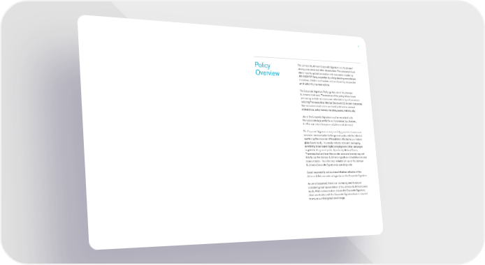 1 Policy The Johnson & Johnson Corporate Signature is a “trust mark” among consumers and other stakeholders. The company’s trust stems from its special connection with consumers created by Overview ® JOHNSON’S Baby, supported by a long-standing commitment to mothers, children and families, and reinforced by responsible and trustworthy business actions. The Corporate Signature Policy guides use of the Johnson & Johnson trust mark. The essence of the policy allows broad use among multiple non-consumer stakeholders by all businesses including Pharmaceutical, Medical Device and Consumer companies. Non-consumer stakeholders are broadly defined as medical professionals, policy makers, hospitals, payers, retailers, etc. Use of the Corporate Signature must be consistent with the appropriate legal entity for our businesses (i.e. Janssen, the Pharmaceutical Companies of Johnson & Johnson). The Corporate Signature is only carefully guarded in broad-scale consumer communication to the general public, with the intent of maintaining the consumer differentiation afforded by our historic global brand equity. This mostly includes consumer packaging, advertising, broad-based digital campaigns and other campaigns targeted to the general public. Specifically, Medical Device, Pharmaceutical and (over-the-counter consumer brands) may not directly use the Johnson & Johnson signature in direct-to-consumer communication. This is the only limitation on use of the Johnson & Johnson Corporate Signature by operating units. Social responsibility and business initiatives reflective of the Johnson & Johnson external agenda use the Corporate Signature. As use is broadened, there is an increasing need to ensure consistent global representation of the Johnson & Johnson brand equity. When communication involves the Corporate Signature, close coordination with the Corporate Signature team is required to ensure a unified global brand image.