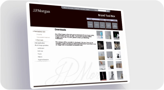 JPMorgan Brand Book Page 45 Page 47Photography style Stock image guideline Landscapes People Objects Negative Examples Buildings Asia application Cropping Downloads Unacceptable treatment