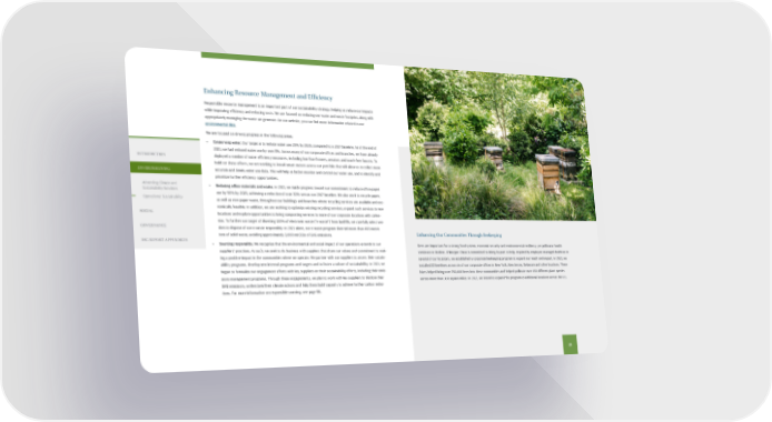 Enhancing Resource Management and Efficiency Responsible resource management is an important part of our sustainability strategy, helping us reduce our impacts while improving efficiency and reducing costs. We are focused on reducing our water and waste footprint, along with appropriately managing the waste we generate. On our website, you can find more information related to our environmental data . We are focused on driving progress in the following areas: • Conserving water. Our target is to reduce water use 20% by 2030, compared to a 2017 baseline. As of the end of 2021, we had reduced water use by over 5%. Across many of our corporate offices and branches, we have already deployed a number of water efficiency measures, including low-flow fixtures, aerators and touch-free faucets. To build on these efforts, we are working to install smart meters across our portfolio that will allow us to collect more accurate and timely water use data. This will help us better monitor and control our water use, and to identify and prioritize further efficiency opportunities. • Reducing office materials and waste. In 2021, we made progress toward our commitment to reduce office paper use b y 90% by 2025, achieving a reduction of over 50% versus our 2017 baseline. We also work to recycle paper, as well as non-paper waste, throughout our buildings and branches where recycling services are available and eco - nomically feasible. In addition, we are working to optimize existing recycling services, expand such services to new locations and explore opportunities to bring composting services to more of our corporate locations with cafete - rias. To further our target of diverting 100% of electronic waste ("e-waste") from landfills, we carefully select ven - dors to dispose of our e-waste responsibly. In 2021 alone, our e-waste program diverted more than 490 metric tons of solid waste, avoiding approximately 3,000 mtCO2e of GHG emissions. • Sourcing responsibly. We recognize that the environmental and social impact of our operations extends to our suppliers’ practices. As such, we seek to do business with suppliers that share our values and commitment to mak - ing a positive impact in the communities where we operate. We partner with our suppliers to assess their sustain - ability programs, develop new internal programs and targets and to foster a culture of sustainability. In 2021, we began to formalize our engagement efforts with key suppliers on their sustainability efforts, including their emis - sions management programs. Through these engagements, we plan to work with key suppliers to disclose their GHG emissions, understand their climate actions and help them build capacity to achieve further carbon reduc - tions. For more information on responsible sourcing, see page 58. Enhancing Our Communities Through Beekeeping Bees are important for a strong food system, economic security and environmental resiliency, yet pollinator health continues to decline. JPMorgan Chase is committed to doing its part to help. Inspired by employee-managed beehives in several of our locations, we established a corporate beekeeping program to expand our reach and impact. In 2021, we installed 20 beehives across six of our corporate offices in New York, New Jersey, Delaware and other locations. These hives helped bring over 750,000 bees into these communities and helped pollinate over 450 different plant species across more than 300 square miles. In 2022, we intend to expand the program to additional locations across the U.S. 19 INTRODUCTION ENVIRONMENTAL Advancing Climate and Sustainability Solutions Operational Sustainability SOCIAL GOVERNANCE ESG REPORT APPENDICES