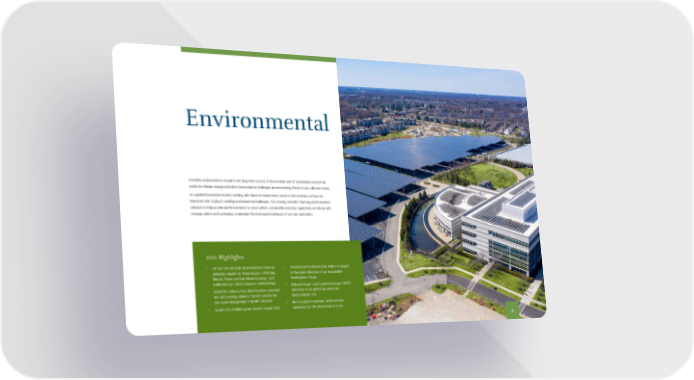 Environmental A healthy environment is crucial to the long-term success of the economy and of communities around the world, but climate change and other environmental challenges pose increasing threats to our collective future. As a global financial institution working with clients in nearly every sector of the economy, we have an important role to play in tackling environmental challenges. Our strategy includes financing and investment solutions to help accelerate the transition to a low-carbon, sustainable economy, supporting our clients with strategic advice and continuing to minimize the environmental impact of our own operations. 2021 Highlights • Set our first portfolio-level emissions intensity reduction targets for three sectors – Oil & Gas, Electric Power and Auto Manufacturing – and published our Carbon Compass SM methodology • Joined the Industry-led, United Nations-convened Net Zero Banking Alliance ("NZBA") and the Net Zero Asset Management ("NZAM") initiative • Issued a $1.25 billion green bond in August 2021 • Financed and facilitated $106 billion in support of the green objective of our Sustainable Development Target • Reduced Scope 1 and 2 greenhouse gas (“GHG”) emissions in our global operations by approximately 15% • Met our goal to maintain carbon neutral operations for the second year in a row 11