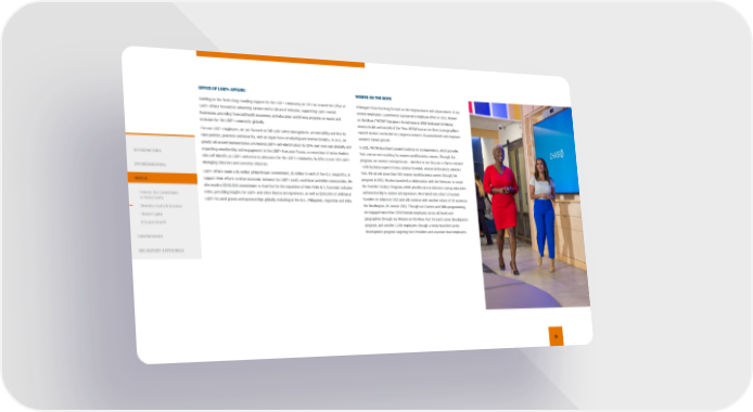 OFFICE OF LGBT+ AFFAIRS Building on the Firm’s long-standing support for the LGBT+ community, in 2021 we created the Office of LGBT+ Affairs focused on advancing careers and a culture of inclusion, supporting LGBT+ owned businesses, providing financial health awareness and education and driving progress on equity and inclusion for the LGBT+ community globally. For our LGBT+ employees, we are focused on full-cycle talent management, accountability and best-in- class policies, practices and benefits, with an equal focus on allyship and intersectionality. In 2021, we greatly advanced representation, increasing LGBT+ self-identification by 50% year-over-year globally and expanding membership and engagement in the LGBT+ Executive Forum, a consortium of senior leaders who self-identify as LGBT+ and serve as advocates for the LGBT+ community, by 85% to over 370 LGBT+ Managing Directors and Executive Directors. LGBT+ Affairs made a $5 million philanthropic commitment, $1 million to each of five U.S. nonprofits, to support their efforts to drive economic inclusion for LGBT+ youth, workforce and elder communities. We also made a $500,000 commitment to StartOut for the expansion of their Pride U.S. Economic Inclusion Index, providing insights for LGBT+ and other diverse entrepreneurs, as well as $250,000 of additional LGBT+ focused grants and sponsorships globally, including in the U.K., Philippines, Argentina and India. WOMEN ON THE MOVE JPMorgan Chase has long focused on the empowerment and advancement of our women employees. Launched as a grassroots employee effort in 2013, Women on the Move ("WOTM") became a formal team in 2018 dedicated to helping women inside and outside of the Firm. WOTM focuses on three strategic pillars: expand women-run businesses, improve women's financial health and empower women's career growth. In 2021, WOTM launched Curated Coaching for Entrepreneurs, which provides free, one-on-one coaching for women small business owners. Through the program, we connect entrepreneurs – whether or not they are a Chase customer – with business experts from a woman-founded, woman-led business advisory firm. We served more than 700 women small business owners through the program in 2021. We also launched a collaboration with the Techstars to create the Founder Catalyst Program, which provides pre-accelerator startup education and mentorship to women entrepreneurs. We trained one cohort of women founders in Atlanta in 2021 and will continue with another cohort of 20 women in the Washington, DC area in 2022. Through our Careers and Skills programming, we engaged more than 7,000 female employees across all levels and geographies through our Women on the Move Fast Forward career development program, and another 1,200 employees through a newly-launched career development program targeting Vice President and Associate level employees. 29 INTRODUCTION ENVIRONMENTAL SOCIAL Feature: Our Commitment to Racial Equity Diversity, Equity & Inclusion Human Capital Inclusive Growth GOVERNANCE ESG REPORT APPENDICES