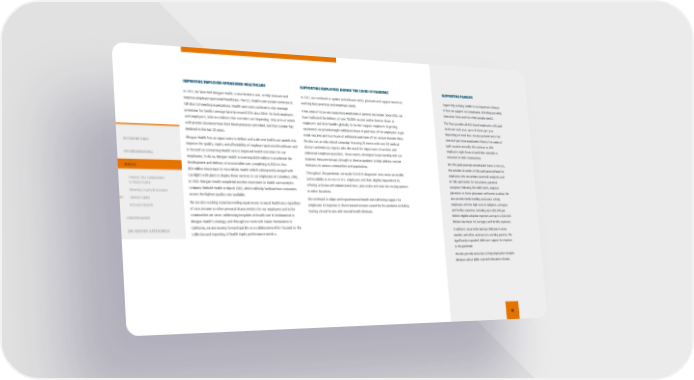 IMPROVING EMPLOYER-SPONSORED HEALTHCARE In 2021, we launched Morgan Health, a new business unit, to help innovate and improve employer-sponsored healthcare. The U.S. health care system continues to fall short of meeting expectations. Health care costs continue to rise -average premiums for family coverage have increased 22% since 2016- for both employers and employees, with no evidence that outcomes are improving. Only 46% of adults with private insurance have their blood pressure controlled, and that number has declined in the last 10 years. Morgan Health has an opportunity to deliver and scale new healthcare models that improve the quality, equity and affordability of employer-sponsored healthcare and is focused on connecting health care to improved health outcomes for our employees. To do so, Morgan Health is investing $250 million to accelerate the development and delivery of accountable care, completing in 2021 its first $50 million investment in Vera Whole Health (which subsequently merged with Castlight) with plans to deploy these services to our employees in Columbus, Ohio, in 2022. Morgan Health completed another investment in health care analytics company Embold Health in March 2022, which will help facilitate how consumers access the highest-quality care available. We are also working toward providing equal access to equal healthcare, regardless of race, income or other personal characteristics for our employees and in the communities we serve. Addressing inequities in health care is fundamental to Morgan Health’s strategy, and through our work with Kaiser Permanente in California, we are moving forward quickly on a collaborative effort focused on the collection and reporting of health equity performance metrics. SUPPORTING FAMILIES Supporting working families is an important element of how we support our employees, including providing time away from work for when people need it. The Firm provides all U.S.-based employees with paid sick leave each year, up to 96 hours per year depending on local laws. We also provide most full- time and part-time employees three to five weeks of paid vacation annually. We continue to offer employees eight hours of paid time annually to volunteer in their communities. We offer paid parental and adoption leave. In the U.S., this includes 16 weeks of fully paid parental leave for employees who are primary parental caregivers and six fully paid weeks for non-primary parental caregivers following the child’s birth, adoption placement or foster placement with intent to adopt. We also provide family-building assistance to help employees with the high costs of adoption, surrogacy and fertility expenses, including up to $10,000 per child in eligible adoption expenses and up to a $30,000 lifetime maximum for surrogacy and fertility expenses. In addition, we provide backup childcare in many markets and other assistance to working parents. We significantly expanded child care support in response to the pandemic. We also provide resources to help employees navigate decisions about elder care and education choices. SUPPORTING EMPLOYEES DURING THE COVID-19 PANDEMIC In 2021, we continued to update and enhance safety protocols and support based on evolving best practices and employee needs. A key area of focus was supporting employees in getting vaccinated. Since 2021, we have facilitated the delivery of over 70,000 vaccine and/or booster doses to employees and their families globally. To further support employees in getting vaccinated, we provided eight additional hours of paid time off for employees to get initial vaccines and four hours of additional paid time off for vaccine booster shots. We also ran an educational campaign featuring 15 events with over 30 medical doctors and industry experts who discussed the importance of vaccines and addressed employee questions. These events, developed in partnership with our Business Resource Groups, brought in diverse speakers to help address vaccine hesitancy in various communities and populations. Throughout the pandemic, we made COVID-19 diagnostic tests more accessible and available at no cost to U.S. employees and their eligible dependents by offering at-home self-administered tests, plus onsite and near-site testing options in select locations. We continued to adapt and expand mental health and well-being support for employees in response to the increased stresses caused by the pandemic including hosting virtual forums with mental health clinicians. 35 INTRODUCTION ENVIRONMENTAL SOCIAL Feature: Our Commitment to Racial Equity Diversity, Equity & Inclusion Human Capital Inclusive Growth GOVERNANCE ESG REPORT APPENDICES