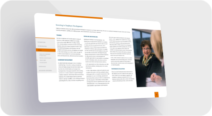 Investing in Employee Development Helping our employees advance their skills and professional development is important to our human capital strategy. We invest in our employees’ development through a robust suite of training, leadership development, upskilling and reskilling programs, mentorship initiatives and performance evaluations. TRAINING We train our employees with the skills needed for today and tomorrow. In 2021, employees completed over 10 million courses and over eight million hours of training. Training efforts include mandatory curricula for new hires and existing employees, along with a range of programs focused on topics from leadership development and technology to risk and compliance and business processes. All employees are required to take annual training on our Code of Conduct (see page 57), as well as courses related to DEI, anti-money laundering, privacy and data protection, cybersecurity and anti-corruption. LEADERSHIP DEVELOPMENT Our global leadership development Center of Excellence, Leadership Edge, is focused on creating one leadership culture and helping managers become better leaders every day. More than 100,000 leaders and managers have participated since the program launched in 2015, including 14,000 in 2021. We also continued to expand the Manager Excellence framework, which defines effective and inclusive leadership. This includes designing learning specifically tailored to manager capabilities, such as driving performance, prioritizing diversity, equity & inclusion and guiding careers. UPSKILLING AND RESKILLING Upskilling and reskilling our existing employees – who already know our culture and are committed to our company – is an effective and efficient way to have the talent we need to compete and thrive now and into the future. Just as importantly, it is one of the best ways we can advance our commitment to diversity, equity and inclusion. For example, our Firm’s front-line and entry-level employees, whose roles are most likely to be affected by technological disruption, disproportionately identify as women and diverse employees. By taking proactive steps to create meaningful and accessible opportunities for career mobility, we can mitigate the risk of losing legacy talent, and continue our efforts towards a more diverse and representative workforce. In 2021, approximately one-third of all positions were filled with internal candidates, including nearly 30% of senior- level positions. In order to help employees understand the skills they need to advance their careers at the Firm, and identify relevant training opportunities, we expanded communication of skill requirements for over 350 Technology, Operations and Branch job profiles covering over half of our employees. We also offer programs to help employees develop tailored learning journeys based on aspirational roles in their career development plans. In 2021, these learning journeys were made available for approximately 42,000 employees. We further support employee development with education benefits. In 2021, JPMorgan Chase expanded these offerings in North America with access to over 400 bachelors, masters and certification programs, as well as partnering with our education providers to deliver programs that are designed to prepare employees for new jobs in growing roles at the Firm. Of the nearly 6,000 employees in North America who enrolled in our education benefits in 2021, 76% are associate level or below, 51% are women, 58% identify as ethnically diverse and 23% of participants had already experienced upward career growth during the year. In 2021, we also continued to maintain a focus on our talent management and succession planning process. The human resources team actively engages with senior leaders to discuss key talent, internal succession and the development of our leadership pipeline. PERFORMANCE EVALUATIONS We use an annual Firmwide performance review process to help employees grow and to evaluate how they support our culture, business success and employee engagement and development. Employees are assessed across four core dimensions: business results; client, customer and stakeholder; teamwork and leadership; and risks, controls and conduct. 32 INTRODUCTION ENVIRONMENTAL SOCIAL Feature: Our Commitment to Racial Equity Diversity, Equity & Inclusion Human Capital Inclusive Growth GOVERNANCE ESG REPORT APPENDICES