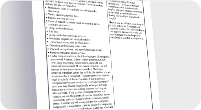 16 2024 Evidence of Coverage for WA PEBB Kaiser Permanente Senior Advantage Medical Benefits Chart Services that are covered for you What you must pay when you get these services There is no limit to the number of medically necessary Cost-sharing is charged for each hospital days or services that are generally and customarily inpatient stay. †If you get authorized provided by acute care general hospitals. Covered services inpatient care at an out-of-network include, but are not limited to: hospital after your emergency condition • Semiprivate room (or a private room if medically is stabilized, your cost is the cost- necessary). sharing you would pay at a network • Meals, including special diets. hospital. • Regular nursing services. Note: If you are admitted to the hospital • Costs of special care units (such as intensive care or in 2023 and are not discharged until coronary care units). sometime in 2024, the 2023 cost-sharing • Drugs and medications. will apply to that admission until you • Lab tests. are discharged from the hospital or • X-rays and other radiology services. transferred to a skilled nursing facility. • Necessary surgical and medical supplies. • Use of appliances, such as wheelchairs. • Operating and recovery room costs. • Physical, occupational, and speech language therapy. • Inpatient substance abuse services. • Under certain conditions, the following types of transplants are covered: Corneal, kidney, kidney-pancreatic, heart, liver, lung, heart/lung, bone marrow, stem cell, and intestinal/multivisceral. If you need a transplant, we will arrange to have your case reviewed by a Medicare- approved transplant center that will decide whether you are a candidate for a transplant. Transplant providers may be local or outside of the service area. If our in-network transplant services are outside the community pattern of care, you may choose to go locally as long as the local transplant providers are willing to accept the Original Medicare rate. If we provide transplant services at a location outside the pattern of care for transplants in your community and you choose to obtain transplants at this distant location, we will arrange or pay for appropriate lodging and transportation costs for you and a companion, in accord with our travel and lodging guidelines, which are available from Member Services. • Blood—including storage and administration. • Physician services. † Your provider must obtain prior authorization from our plan. * Your cost-sharing for these services or items doesn't apply toward the maximum out-of-pocket amount. kp.org