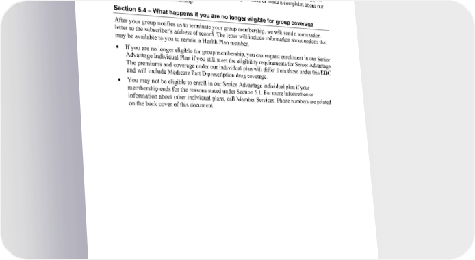 2024 Evidence of Coverage for WA PEBB Kaiser Permanente Senior Advantage 99 Chapter 8: Ending your membership in our plan Section 5.3 – You have the right to make a complaint if we end your membership in our plan If we end your membership in our plan, we must tell you our reasons in writing for ending your membership. We must also explain how you can file a grievance or make a complaint about our decision to end your membership. Section 5.4 – What happens if you are no longer eligible for group coverage After your group notifies us to terminate your group membership, we will send a termination letter to the subscriber's address of record. The letter will include information about options that may be available to you to remain a Health Plan member. • If you are no longer eligible for group membership, you can request enrollment in our Senior Advantage Individual Plan if you still meet the eligibility requirements for Senior Advantage. The premiums and coverage under our individual plan will differ from those under this EOC and will include Medicare Part D prescription drug coverage. • You may not be eligible to enroll in our Senior Advantage individual plan if your membership ends for the reasons stated under Section 5.1. For more information or information about other individual plans, call Member Services. Phone numbers are printed on the back cover of this document. 1-877-221-8221 (TTY 711), 7 days a week, 8 a.m. to 8 p.m.