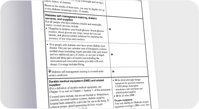 2024 Evidence of Coverage for WA PEBB Kaiser Permanente Senior Advantage 7 Medical Benefits Chart Services that are covered for you What you must pay when you get these services high blood sugar (glucose). Tests may also be covered if you meet other requirements, like being overweight and having a family history of diabetes. Based on the results of these tests, you may be eligible for up to two diabetes screenings every 12 months. Diabetes self-management training, diabetic services, and supplies For all people who have diabetes (insulin and noninsulin users), covered services include: $0 • †Supplies to monitor your blood glucose: Blood glucose monitor, blood glucose test strips, lancet devices and lancets, and glucose-control solutions for checking the accuracy of test strips and monitors. • †For people with diabetes who have severe diabetic foot disease: One pair per calendar year of therapeutic custom- molded shoes (including inserts provided with such shoes) $0 and two additional pairs of inserts, or one pair of depth shoes and three pairs of inserts (not including the noncustomized removable inserts provided with such shoes). Coverage includes fitting. Diabetes self-management training is covered under $0 certain conditions. Durable medical equipment (DME) and related • $0 for ultraviolet light therapy supplies† equipment for psoriasis treatment, (For a definition of durable medical equipment, see CADD pumps, bone/spine Chapter 10 as well as Chapter 3, Section 7, of this document.) stimulators, and ventilators and Covered items include, but are not limited to: Wheelchairs, enteral pumps/supplies crutches, powered mattress systems, diabetic supplies, • $0 for all other DME hospital beds ordered by a provider for use in the home, IV Oxygen equipment infusion pumps, speech-generating devices, oxygen Your cost sharing for Medicare oxygen equipment, nebulizers, and walkers. equipment coverage is 20%, every time We cover all medically necessary DME covered by Original you receive equipment. Medicare. If our supplier in your area does not carry a Your cost sharing will not change after particular brand or manufacturer, you may ask them if they being enrolled for 36 months. † Your provider must obtain prior authorization from our plan. * Your cost-sharing for these services or items doesn't apply toward the maximum out-of-pocket amount. 1-877-221-8221 (TTY 711), 7 days a week, 8 a.m. to 8 p.m.