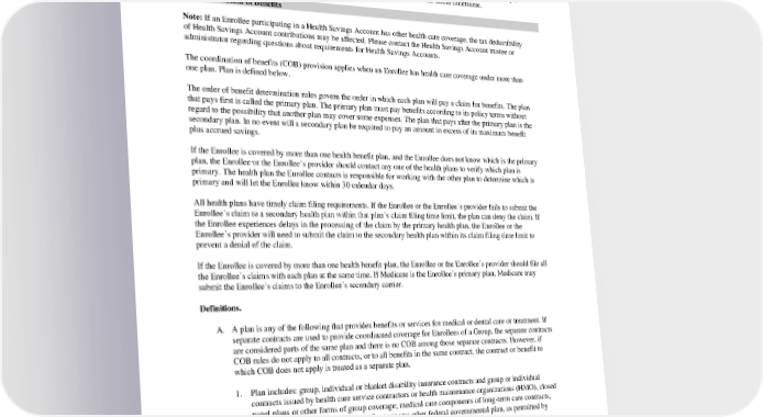 • Urgent care review requests – within 48 hours. • Non-urgent preservice review requests – within 5 calendar days. • Post-service review requests – within 30 calendar days. Timeframes for pre-service and post-service claims can be extended by KFHPWA for up to an additional 15 days. Enrollees will be notified in writing of such extension prior to the expiration of the initial timeframe. X. Coordination of Benefits Note: If an Enrollee participating in a Health Savings Account has other health care coverage, the tax deductibility of Health Savings Account contributions may be affected. Please contact the Health Savings Account trustee or administrator regarding questions about requirements for Health Savings Accounts. The coordination of benefits (COB) provision applies when an Enrollee has health care coverage under more than one plan. Plan is defined below. The order of benefit determination rules govern the order in which each plan will pay a claim for benefits. The plan that pays first is called the primary plan. The primary plan must pay benefits according to its policy terms without regard to the possibility that another plan may cover some expenses. The plan that pays after the primary plan is the secondary plan. In no event will a secondary plan be required to pay an amount in excess of its maximum benefit plus accrued savings. If the Enrollee is covered by more than one health benefit plan, and the Enrollee does not know which is the primary plan, the Enrollee or the Enrollee’s provider should contact any one of the health plans to verify which plan is primary. The health plan the Enrollee contacts is responsible for working with the other plan to determine which is primary and will let the Enrollee know within 30 calendar days. All health plans have timely claim filing requirements. If the Enrollee or the Enrollee’s provider fails to submit the Enrollee’s claim to a secondary health plan within that plan’s claim filing time limit, the plan can deny the claim. If the Enrollee experiences delays in the processing of the claim by the primary health plan, the Enrollee or the Enrollee’s provider will need to submit the claim to the secondary health plan within its claim filing time limit to prevent a denial of the claim. If the Enrollee is covered by more than one health benefit plan, the Enrollee or the Enrollee’s provider should file all the Enrollee’s claims with each plan at the same time. If Medicare is the Enrollee’s primary plan, Medicare may submit the Enrollee’s claims to the Enrollee’s secondary carrier. Definitions. A. A plan is any of the following that provides benefits or services for medical or dental care or treatment. If separate contracts are used to provide coordinated coverage for Enrollees of a Group, the separate contracts are considered parts of the same plan and there is no COB among those separate contracts. However, if COB rules do not apply to all contracts, or to all benefits in the same contract, the contract or benefit to which COB does not apply is treated as a separate plan. 1. Plan includes: group, individual or blanket disability insurance contracts and group or individual contracts issued by health care service contractors or health maintenance organizations (HMO), closed panel plans or other forms of group coverage; medical care components of long-term care contracts, such as skilled nursing care; and Medicare or any other federal governmental plan, as permitted by law. 2. Plan does not include: hospital indemnity or fixed payment coverage or other fixed indemnity or fixed payment coverage; accident only coverage; specified disease or specified accident coverage; limited benefit health coverage, as defined by state law; school accident type coverage; benefits for non- medical components of long-term care policies; automobile insurance policies required by statute to PEBB HMOHSA 2024 65