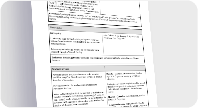 Inpatient mental health and wellness services, Residential Treatment and partial hospitalization programs must be provided at a hospital or facility that KFHPWA has approved specifically for the treatment of mental disorders. Non-Emergency inpatient hospital services, including Residential Treatment, require Preauthorization. Outpatient specialty services, including partial hospitalization programs, rTMS, ECT, and Esketamine require Preauthorization. Routine outpatient therapy and psychiatry services with contracted network providers do not require Preauthorization. Exclusions: Specialty treatment programs such as “behavior modification programs” not considered Medically Necessary; relationship counseling or phase of life problems (Z code only diagnoses);wilderness therapy; aversion therapy Naturopathy Naturopathy. After Deductible, Enrollee pays $15 primary care provider services Copayment Limited to 3 visits per medical diagnosis per calendar year without Preauthorization. Additional visits are covered with Preauthorization. Laboratory and radiology services are covered only when obtained through a Network Facility. Exclusions: Herbal supplements; nutritional supplements; any services not within the scope of the practitioner’s licensure Newborn Services Newborn services are covered the same as for any other Hospital - Inpatient: After Deductible, Enrollee condition. Any Cost Share for newborn services is separate pays $150 Copayment per day up to $750 per from that of the mother. admission Preventive services for newborns are covered under During the baby’s initial hospital stay while the birth Preventive Services. mother and baby are both confined, any applicable Deductible and Copayment for the newborn are When an Enrollee gives birth, the newborn is entitled to the waived benefits set forth in the EOC from birth through 3 weeks of age. After 3 weeks of age, no benefits are available unless the Hospital - Outpatient: After Deductible, Enrollee newborn child qualifies as a Dependent and is enrolled. See pays $150 Copayment Section VI. for enrollment information. Outpatient Services: After Deductible, Enrollee pays $15 primary care provider services Copayment or $30 specialty care provider services Copayment Nutritional Counseling Nutritional counseling. After Deductible, Enrollee pays $15 primary care PEBB_CA_2024 31