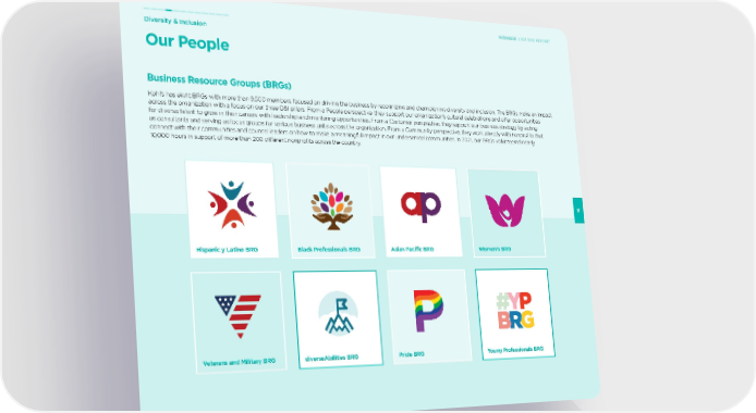 Diversity & Inclusion 35 2021 ESG REPORT Our People Business Resource Groups (BRGs) Kohl’s has eight BRGs with more than 9,500 members focused on driving the business by recognizing and championing diversity and inclusion. The BRGs make an impact across the organization with a focus on our three D&I pillars. From a People perspective, they support our organization’s cultural celebrations and offer opportunities for diverse talent to grow in their careers with leadership and mentoring opportunities. From a Customer perspective, they support our business strategy by acting as consultants and serving as focus groups for various business units across the organization. From a Community perspective, they work directly with nonprofits that connect with their communities and counsel leaders on how to make a meaningful impact in our underserved communities. In 2021, our BRGs volunteered nearly 10,000 hours in support of more than 200 different nonprofits across the country. Hispanic y Latino BRG Black Professionals BRG Asian Pacific BRG Women’s BRG Veterans and Military BRG diverseAbilities BRG Pride BRG Young Professionals BRG 2021 ESG REPORT