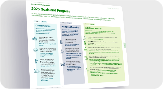 Achieve 100% sustainably sourced cotton for Kohl’s proprietary brands by 2025 24% of cotton was sustainably sourced Require 50% of polyester styles to contain recycled materials in Kohl’s proprietary brands by 2025 20% of styles contain recycled polyester Require all approved facilities producing Kohl’s private and exclusive branded products to complete the Higg Index Environmental Module by 2025 100% of approved facilities were required to complete the Higg Index Facility Environmental Module (FEM) in 2021, 80.5% of all approved facilities completed the Higg FEM Utilizing the Higg Index, drive substantial reduction in water use in the production of Kohl’s-owned branded products by 2025 Higg FEM 2020 performance analysis for water-intensive facilities revealed that our suppliers located in the most-water-stressed regions already have strong water management practices in place Kohl’s completed a water risk assessment using the World Resources Institute’s (WRI) Aqueduct Water Risk Atlas to map areas of water risks across our global supply chain Emphasize the elimination and reduction of chemicals and strive for zero discharge of hazardous chemicals in tier 1 suppliers for select Kohl’s proprietary brands Our Manufacturing Restricted Substance List (MRSL) is now aligned with the Zero Discharge of Hazardous Chemicals (ZDHC) MRSL 100% of our proprietary brand towels and sheets are MADE IN GREEN or STANDARD 100 by OEKO-TEX® Divert 85% of Kohl’s U.S. operational waste from landfills annually 86.5% of waste was diverted from landfills, CY2021 Label 100% of Kohl’s-owned branded packaging with the How2Recycle® label by 2025 95% of shipping bags and boxes 100% of in-store shopping bags 100% of private/exclusive shoeboxes Reduce the amount of plastic and cardboard in Kohl’s-owned branded packaging We continue to reduce the amount of packaging we use by enhancing our e-fulfillment technology Reduce combined scope 1 and scope 2 greenhouse gas emissions by 50% versus 2014 baseline by 2025 50% reduction in scope 1 and 2, CY2021 Reduce energy consumption by 30% at Kohl’s facilities by 2025 versus a 2008 baseline 29% reduction in energy consumption since 2008, CY2021 Expand renewable energy platforms by building off of the company’s existing 161 solar and wind locations. 165 solar and wind locations Support the transition to a low-carbon transportation system, building off of the company’s existing 96 locations offering electric vehicle (EV) charging 146 locations offered EV charging 2025 Goals and Progress In 2019, we set sustainability goals, including quantitative targets focused on three key areas: climate action, waste and recycling and sustainable sourcing. We are committed to monitoring and reporting performance and progress against these goals. Environmental Sustainability 7 2021 ESG REPORT Sustainable Sourcing Our sustainable sourcing goals for Kohl’s private brand products are focused on the efficient use of natural resources and environmentally sound management of chemicals. Waste and Recycling Our waste and recycling goals are focused on the management of all wastes, reducing waste generation and promoting relevant recycling information to customers. Climate Change Our climate action goals are focused on the reduction of greenhouse emissions and the increase of renewable energy use. Goal Progress *Goal progress is updated as of year-end FY2021 unless otherwise noted. Goal Progress Goal Progress
