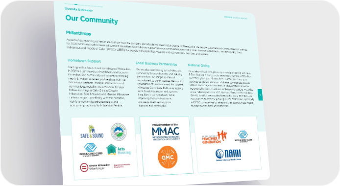 Our Community Diversity & Inclusion 42 2021 ESG REPORT Philanthropy As part of our evolving commitment to show how the company plans to deliver meaningful change for the good of the people, customers and communities Kohl’s serves, by 2025 Kohl’s and Kohl’s Cares will commit more than $20 million to support diverse communities, specifically Asian Americans and Pacific Islanders (AAPI), Black, Indigenous and People of Color (BIPOC), LGBTQIA+, people with disabilities, veterans and active military members and women. Local Business Partnerships We are also contributing to the Milwaukee community through business and industry partnerships, including a continued commitment to the Milwaukee Metropolitan Association of Commerce and the Greater Milwaukee Committee. Both organizations work to address racism and systemic inequities in our hometown, while improving metro Milwaukee as a place to invest capital, grow business and create jobs. National Giving On a national level, through our continued partnership with Boys & Girls Clubs of America and a renewed partnership of $5 million over three years with Alliance for a Healthier Generation, we continue to address and support diverse communities through various resources, volunteer time, in-kind donations, as well as incremental funding. In addition to these organizations, we added a new national partner in 2021: National Alliance on Mental Illness (NAMI), in which we provided them with a gift of $2 million over two years to address the growing mental health crisis, specifically in BIPOC communities, by refreshing their support group model to reach communities where they are. Hometown Support Starting with a focus in our hometown of Milwaukee, in 2021 we continued our investment and focus on the Milwaukee community with donations totaling nearly $1 million to renew partnerships with five hometown partners, helping under-resourced communities, including Acts Housing, Employ Milwaukee, Boys & Girls Clubs of Greater Milwaukee, Safe & Sound, and Greater Milwaukee Urban League. Specifically with this donation, Kohl’s is working to enhance equity and economic prosperity for Milwaukee families. 2021 ESG REPORT