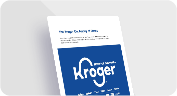 CONFIDENTIAL Kroger Brand Guidelines - For approved Kroger vendor use only 9 To achieve a unified look across Kroger’s family of stores, we recommend using the knockout version of each store’s logo. For clear visibility of the logo collection, use a color-blocked background. The Kroger Co. Family of Stores