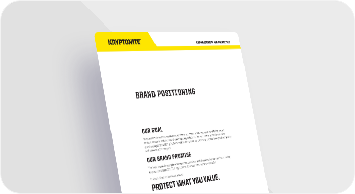 BRAND IDENTITY AND GUIDELINES BRAND BUILDING BLOCKS • 6 OUR GOAL Our passion is to ensure you can go where you want, when you want by offering smart, serious security solutions and safe lighting solutions. We will be the portable security standard against which all others will be compared by providing unparalleled product quality and service with integrity. OUR BRAND PROMISE The lock brand for people who want the certainty and freedom that comes from having Kryptonite protection. The light brand for those who want to ride safer. In short, Kryptonite allows you to: PROTECT WHAT YOU VALUE. BRAND POSITIONING