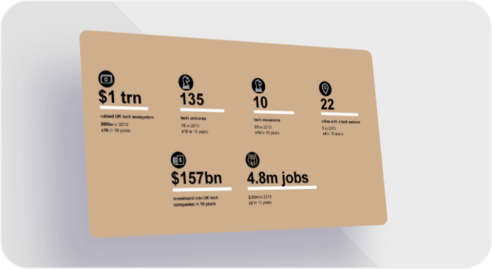 WUQ YDOXHG8.WHFKHFRV\VWHP WHFKXQLFRUQV WHFKGHFDFRUQV FLWLHVZLWKDWHFKXQLFRUQ EQLQ LQ LQ LQ [LQ\HDUV [LQ\HDUV [LQ\HDUV [LQ\HDUV EQ PMREV LQYHVWPHQWLQWR8.WHFK PLQ FRPSDQLHVLQ\HDUV [LQ\HDUV