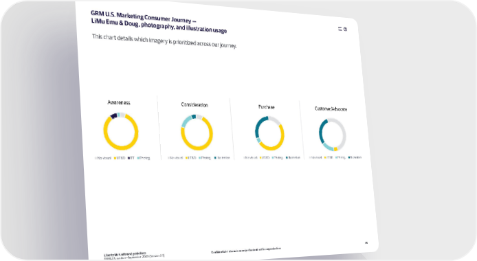GRM U.S. Marketing Consumer Journey — LiMu Emu & Doug, photography, and illustration usage This chart details which imagery is prioritized across our journey. Awareness Consideration Purchase Customer/Advocate No visual LE&D TT Photog. No visual LE&D Photog. Illustration No visual LE&D Photog. Illustration No visual LE&D Photog. Illustration Liberty Mutual brand guidelines GRM U.S. section—September 2020 (Version 2.3) Confidential—Internal use only—Content not for reproduction 35