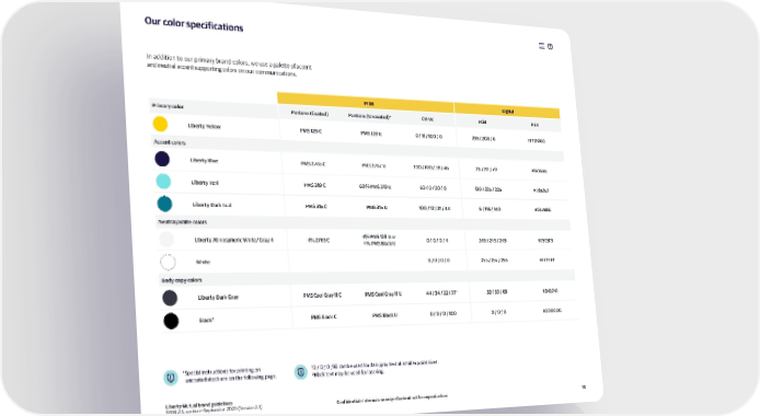 ur color specifications ‰n addition to our priary brand colors we use a palette of accent and neutral accent supporting colors on our counications. rint igital rimary color antone ŽCoated“ antone ŽUncoated“• C‰– ‡ˆ —E˜ i„erty ‰ellow …2™ C …2š U › œ …… œ …›› œ › 2€€ œ 2›š œ › žŒŒ››› †ccent colors i„erty ˆlue 2Ÿ‚€ C 2Ÿ‚Ÿ U …›› œ …›› œ 3š œ ”€ 2‚ œ 2› œ Ÿ› ž…†…””‚ i„erty Šeal 3…™ C ‚›¡ 3…™ U ‚› œ › œ 2› œ › …2› œ 22€ œ 22€ žŸšE…E… i„erty ark Šeal 3…€ C 3…€ U …›› œ …2 œ 2… œ ”” ‚ œ ……‚ œ …”› ž›3Ÿˆš‚ ¢eutralœwhite colors i„erty †tmospheric White œ ray ” ”¡ 2Ÿ‚€ C ”¡ …2š U or › œ › œ › œ ” 2”€ œ 2”€ œ 2”€ žŒ€Œ€Œ€ ”¡ ˆlack U White › œ › œ › œ › 2€€ œ 2€€ œ 2€€ žŒŒŒŒŒŒ ˆody copy colors i„erty ark ray Cool ray …… C Cool ray …… U ”” œ 3” œ 22 œ ŸŸ… €2 œ €€ œ ‚€ ž3”3Ÿ”… 2 ˆlack ˆlack C ˆlack U › œ › œ › œ …›› › œ › œ › ž›››››› ¤ œpecial instructions for printing on ¥0 ¦ 0 ¦ 0 ¦§2 can be used for dar gray text at saller point sižes. uncoated stoc are on the following page. ¨…lac text ay be used for lasering. Liberty Mutual brand guidelines GRM U.S. section—September 2020 (Version 2.3) Confidential—Internal use only—Content not for reproduction … ‚