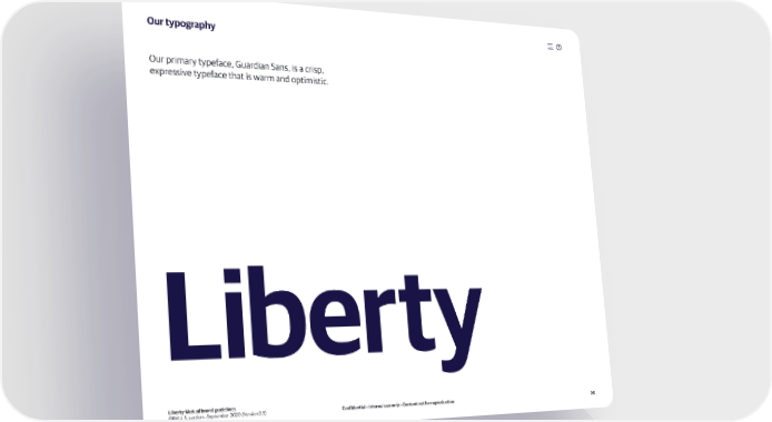 Our typography Our primary typeface, Guardian Sans, is a crisp, expressive typeface that is warm and optimistic. Liberty Liberty Mutual brand guidelines GRM U.S. section—September 2020 (Version 2.3) Confidential—Internal use only—Content not for reproduction 26