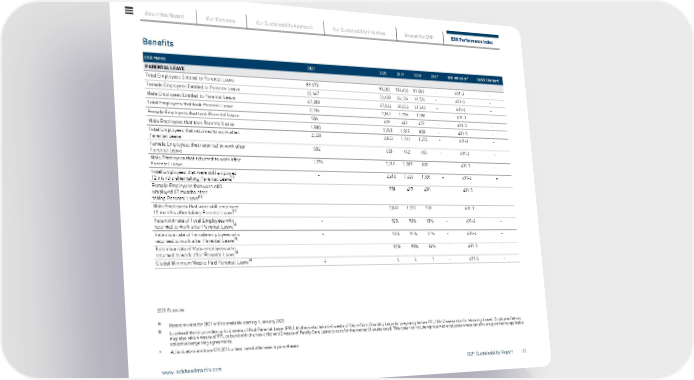 Benefits ESG Metric 2021 2020 2019 2018 2017 GRI Indicator* SASB Standard PARENTAL LEAVE Total Employees Entitled to Parental Leave 89,675 90,282 104,656 81,369 - 401-3 - Female Employees Entitled to Parental Leave 22,467 22,458 24,124 19,724 - 401-3 - Male Employees Entitled to Parental Leave 67,208 67,824 80,532 61,645 - 401-3 - Total Employees that took Parental Leave 2,336 2,842 1,758 1,280 - 401-3 - Female Employees that took Parental Leave 536 629 445 472 - 401-3 - Male Employees that took Parental Leave 1,800 2,213 1,313 808 - 401-3 - Total Employees that returned to work after Parental Leave 2,328 2,833 1,747 1,273 - 401-3 - Female Employees that returned to work after Parental Leave 532 623 442 465 - 401-3 - Male Employees that returned to work after Parental Leave 1,796 2,210 1,305 808 - 401-3 - Total Employees that were still employed 12 months after taking Parental Leave (1) - 2,618 1,627 1,189 - 401-3 - Female Employees that were still employed 12 months after taking Parental Leave (1) - 578 407 430 - 401-3 - Male Employees that were still employed 12 months after taking Parental Leave (1) - 2,040 1,220 759 - 401-3 - Retention rate of Total Employees who returned to work after Parental Leave (1) - 92% 93% 93% - 401-3 - Retention rate of Female employees who returned to work after Parental Leave (1) - 93% 91% 91% - 401-3 - Retention rate of Male employees who returned to work after Parental Leave (1) - 92% 93% 94% - 401-3 - Global Minimum Weeks Paid Parental Leave (2) 4 4 4 1 - 401-3 - 2021 Footnote: (1) Retention data for 2021 will be available starting 1 January 2023. (2) Lockheed Martin provides up to 4 weeks of Paid Parental Leave (PPL). Mothers also take 6–8 weeks of Short-Term Disability Leave for pregnancy before PPL (10–12 weeks total for Maternity Leave). Employees/fathers may also take 4 weeks of PPL to bond with the new child and 2 weeks of Family Care Leave to care for the mother (6 weeks total). This does not include represented employees whose benefits are governed by applicable collective bargaining agreements. * All indicators are from GRI 2016 unless noted otherwise in parentheses. About this Report Our Company Our Sustainability Approach Our Sustainability Priorities Beyond the SMP ESG Performance Index www.lockheedmartin.com 2021 Sustainability Report 62