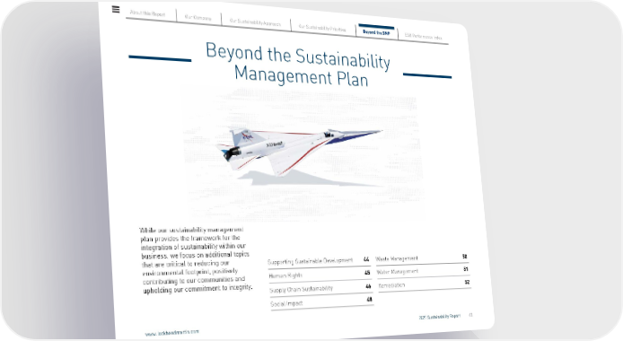 Beyond the Sustainability Management Plan While our sustainability management plan provides the framework for the integration of sustainability within our business, we focus on additional topics that are critical to reducing our environmental footprint, positively contributing to our communities and upholding our commitment to integrity. Supporting Sustainable Development 44 Waste Management 50 Human Rights 45 Water Management 51 Supply Chain Sustainability 46 Remediation 52 Social Impact 48 About this Report Our Company Our Sustainability Approach Our Sustainability Priorities Beyond the SMP ESG Performance Index www.lockheedmartin.com 2021 Sustainability Report 43