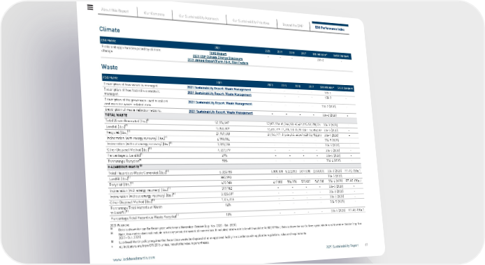 Climate ESG Metric 2021 2020 2019 2018 2017 GRI Indicator* SASB Standard Risks and opportunities posed by climate change TCFD Report 2021 CDP Climate Change Disclosure 2021 Annual Report/Form 10-K: Risk Factors - - - - 201-2 - Waste ESG Metric 2021 2020 2019 2018 2017 GRI Indicator* SASB Standard Description of how waste is managed. 2021 Sustainability Report: Waste Management - - - - 103-2 - Description of how hazardous waste is managed. 2021 Sustainability Report: Waste Management - - - 103-2 - Description of the processes used to collect and monitor waste-related data. 2021 Sustainability Report: Waste Management - - - - 306-2 (2020) - Description of waste reduction actions. 2021 Sustainability Report: Waste Management - - - - 306-2 (2020) - TOTAL WASTE Total Waste Generated (lbs.) (1) 55,574,967 57,872,526 61,566,290 60,631,125 59,578,521 306-3 (2020) - Landfill (lbs.) (2) 15,866,809 16,407,719 17,710,190 15,901,551 15,505,050 306-5 (2020) - Recycled (lbs.) (1) 27,959,018 29,153,717 31,566,392 26,561,628 33,402,244 306-4 (2020) - Incineration (with energy recovery) (lbs.) (1) 4,098,804 - - - - 306-5 (2020) - Incineration (without energy recovery) (lbs.) (1) 3,323,258 - - - - 306-5 (2020) - Other Disposal Method (lbs.) (1) 4,327,079 - - - - 306-5 (2020) - Percentage to Landfill (1) 29% - - - - 306-5 (2020) - Percentage Recycled (1) 50% - - - - 306-4 (2020) - HAZARDOUS WASTE (3) Total Hazardous Waste Generated (lbs.) (1) 6,323,483 5,000,000 5,322,000 3,014,000 2,548,000 306-3 (2020) RT-AE-150a.1 Landfill (lbs.) (1) 885,390 - - - - 306-5 (2020) - Recycled (lbs.) (1) 620,288 412,000 506,000 520,000 562,000 306-4 (2020) RT-AE-150a.1 Incineration (with energy recovery) (lbs.) (1) 379,782 - - - - 306-5 (2020) - Incineration (without energy recovery) (lbs.) (1) 3,023,607 - - - - 306-5 (2020) - Other Disposal Method (lbs.) (1) 1,414,416 - - - - 306-5 (2020) - Percentage Total Hazardous Waste to Landfill (1) 14% - - - - 306-5 (2020) - Percentage Total Hazardous Waste Recycled (1) 10% - - - - 306-4 (2020) RT-AE-150a.1 2021 Footnote: (1) Data is shown for our Go Green year, which runs November-October (e.g. Nov. 2020 - Oct. 2021). (2) Note, this metric does not include ash as by-product disposal of incineration. If included, total waste to landfill would be 16,882,919 lbs.; Data is shown for our Go Green year, which runs November-October (e.g. Nov. 2020 - Oct. 2021). (3) Lockheed Martin policy requires that hazardous waste be disposed of at an approved facility in accordance with applicable regulations, rules and requirements. * All indicators are from GRI 2016 unless noted otherwise in parentheses. About this Report Our Company Our Sustainability Approach Our Sustainability Priorities Beyond the SMP ESG Performance Index www.lockheedmartin.com 2021 Sustainability Report 69