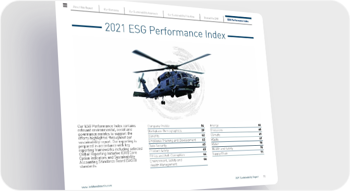 2021 ESG Performance Index Our ESG Performance Index contains relevant environmental, social and governance metrics to support the efforts highlighted throughout our sustainability report. Our reporting is prepared in accordance with key reporting frameworks including selected Global Reporting Initiative (GRI) Core Option indicators and Sustainability Accounting Standards Board (SASB) standards. Company Profile 54 Workplace Demographics 59 Benefits 62 Employee Training and Development 63 Data Security 63 Product Safety 63 Ethics and Anti-Corruption 64 Environment, Safety and Health Management 66 Energy 66 Emissions 68 Climate 69 Waste 69 Water 70 Health and Safety 70 Supply Chain 71 About this Report Our Company Our Sustainability Approach Our Sustainability Priorities Beyond the SMP ESG Performance Index www.lockheedmartin.com 2021 Sustainability Report 53