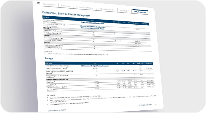 Environment, Safety and Health Management ESG Metric 2021 2020 2019 2018 2017 GRI Indicator* SASB Standard Description of the environmental management system. Environment, Safety and Health Website - - - - 103-2 - Description of the safety and health management system. 2021 Sustainability Report: Workplace Safety Environment, Safety and Health Website - - - - 403-1(2018) - ISO14001 (1) Total number of sites certified 40 41 - - - - - Percentage of sites certified 11% - - - - - - ISO45001 (1) Total number of sites certified 25 26 - - - 403-1(2018) - Percentage of sites certified 7% - - - - 403-1(2018) - ISO5001 Total number of sites certified 0 - - - - - - Percentage of sites certified 0% - - - - - - 2021 Footnote: (1) Includes the certification of our central function. Site certifications may not include all buildings and programs at a site. Energy ESG Metric 2021 2020 2019 2018 2017 GRI Indicator* SASB Standard Description of how energy is managed. 2021 Sustainability Report: Energy Management - - - - 103-2 - Total Energy Consumption (MWh) (1) 3,029,297 - - - - 302-1 RT-AE-130a.1 Energy Intensity Ratio (MMBTU per $M USD Revenue) (1) 141 145.31 151.38 175.1 183.24 302-3 - Energy Reduction vs. 2016 Baseline (% MMBTU) (2) 7% - - - - 302-4 - SCOPE 1 ENERGY CONSUMPTION - - - - - - Total (MWh) (1) 1,536,240 1,513,976 1,564,190 1,482,031 1,478,426 302-1 RT-AE-130a.1 Diesel (MWh) (1) 11,883 12,837 4,461 23,571 2,899 302-1 RT-AE-130a.1 Distillate Fuel Oil No. 2 (MWh) (1) 5,154 1,290 16,080 16,721 18,220 302-1 RT-AE-130a.1 Gasoline (MWh) (1) 17,216 16,963 222,781 219,845 207,835 302-1 RT-AE-130a.1 2021 Footnote: (1) Data is shown for our Go Green year, which runs November-October (e.g. Nov. 2020 - Oct. 2021). (2) Data is shown for our Go Green year, which runs November-October (e.g. Nov. 2020 - Oct. 2021). 2021 is the first year reporting against a 2016 baseline. Our Go Green goal is to reduce energy per occupant by 14% by 2025 compared to a 2016 baseline. * All indicators are from GRI 2016 unless noted otherwise in parentheses. About this Report Our Company Our Sustainability Approach Our Sustainability Priorities Beyond the SMP ESG Performance Index www.lockheedmartin.com 2021 Sustainability Report 66