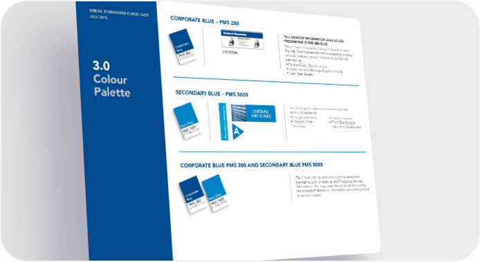 New Blue K 2 New Blue 0 2 34 Y K ANTONE 3005 P M Y 0 100 34 C PMS 3005 VISUAL STANDARDS GUIDELINES C 100 M JULY 2015 CORPORATE BLUE – PMS 280 *ALL VENDOR INFORMATION SHOULD USE Corporate Blue K 18 PREDOMINATLY PMS 280 BLUE. 0 72 Y ANTONE 280 P M C 100 This is Lowe’s Corporate Colour used in the Lowe’s Pagoda. Communicate information regarding company Corporate UNIVERSAL services, policies, product information and Vendor Blue 18 partnerships. K 0 Y PMS 280 alue Red M 72 V K 3 C 100 • Product Cards, Bay Universals 92 Y ANTONE 186 P 100 M • Lowe’s Service Offerings, Register Shields C 12 3.0 • Cash Desk Decals ellow alue Y Colour V K 0 100 Y ANTONE YELLOW 109 P 10 M C 0 Contractor SECONDARY BLUE – PMS 3005 ellow Palette alue Red Y V 0 K K 3 Y 91 PMS 123 92 23 Y 0 M PMS 186 M 100 C Direct and guide customers to various areas and ellow C 12 Contractor Y CURTAINS product departments. 23 1 K 0 91 Y ANTONE AND BLINDS P 23 • Category Banners • Product Locators M C 0 • Uprights, Aisle • Front End Signage, Violators Enter/Exit, Washrooms New Blue K 2 New Blue 0 2 34 Y K ANTONE 3005 P M Y 0 100 34 C PMS 3005 C 100 M Corporate Blue New Blue 0 K 18 New Blue 72 Y 0 K 2 ANTONE 280 2 P M 34 Y K ANTONE 3005 P 100 M Y 0 C 100 34 C PMS 3005 C 100 M CORPORATE BLUE PMS 280 AND SECONDARY BLUE PMS 3005 Corporate Blue 18 K 0 Y PMS 280 alue Red M 72 V K 3 C 100 The 2 blues can be used in conjunction when com- Corporate Blue 92 Y 18 ANTONE 186 P 100 K M 0 C 12 72 Y municating both Directional and Product or Service ANTONE 280 P M C 100 Information. The usage ratio should be determined by Corporate the amount of directional information versus the product New Blue Blue New Blue or service content. 0 K 2 2 ellow 34 Y 18 K ANTONE 3005 K P M 0 Y 0 alue Y 100 Y 34 V C PMS 280 PMS 3005 alue Red K 0 M 72 M V 100 K 3 C 100 C 100 Y ANTONE YELLOW 109 P 10 92 M Y 0 ANTONE 186 P 100 C M C 12 Contractor ellow alue Red Y V 0 K K 3 Y 91 PMS 123 92 23 Y 0 M PMS 186 Corporate Blue M 100 C C 12 0 K 18 ellow 72 Y ANTONE 280 ellow P M Contractor Y C 100 alue Y V 23 1 K 0 0 91 K Y 100 ANTONE Y P ANTONE YELLOW 109 P 23 M 10 0 M C 0 C Corporate Contractor Blue ellow alue Red Y V K 18 0 0 K K 3 Y Y 91 PMS 280 M 72 PMS 123 alue Red 92 23 V Y 100 0 M PMS 186 92 K 3 M 100 C C Y C 12 ANTONE 186 P 100 ellow M C 12 Contractor Y23 1 K 0 91 Y ANTONE P 23 M C 0 ellow alue Y V K 0 100 Y ANTONE YELLOW 109 P 10 M C 0 Contractor ellow alue Red Y V 0 K K 3 Y 91 PMS 123 92 23 Y 0 M PMS 186 M 100 C ellow C 12 Contractor Y23 1 K 0 91 Y ANTONE P 23 M C 0