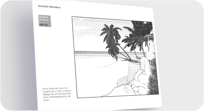Scenario Workflow When everyone leaves the hospital room, Steile is be to changer her environment to e more comfortable setting, the beach.