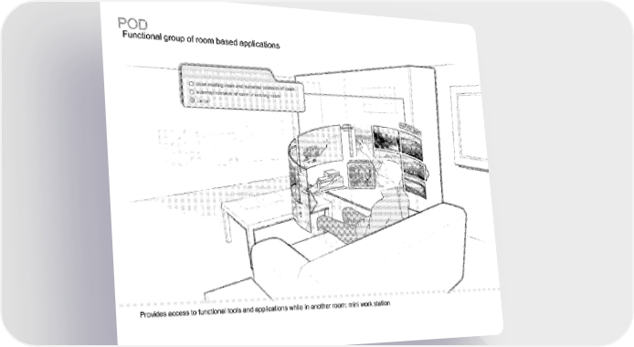 Functional group of room based applications Provides access to functional tools and applications while in another room; mini work station