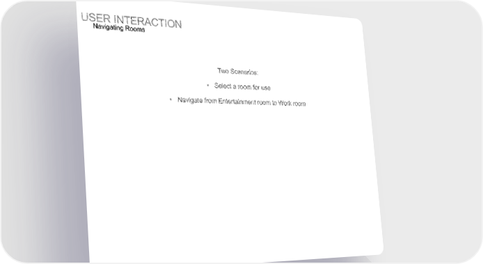 USER ,NITERA.CTON Navigating Rooms ;mo o Scenarios: Select a room for use ffe Navigate from FrIt rtainment room to Work room