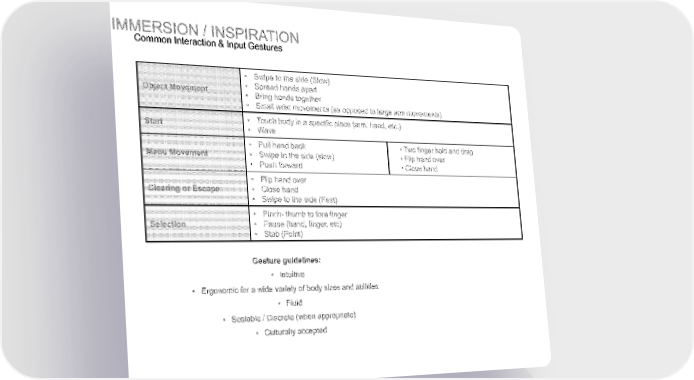 MMERS ,ON ,SRRATION Common Interaction & Input Gestures Swipe the side (Sio t Plovement • Spread hands apart ▪▪Bring hands together wrs;t, movements las ),)nosed to rde arm move !• y %, • Al aVe • Puli hand back • we / 6( (“.Ao Swipe to the side (s ow) - Flip hang over • Hip hand over. sz Close hand the ri • Siie to sde fr-"-"a Pinch- thumb to fore lint • Pause (hand, .finger, Stab (Pont) Gesture auidethi Intuitive Ergonomic for a wide variety of body sizes and abilities F"laid Scalable / Discrete (when appropriate- Cufturally accepted