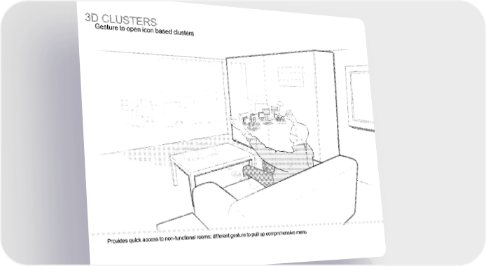 3D C,„„t„JST,„„„S Gesture to open icon based clusters Provides quick access to non-functional rooms; different gesture to pull up comprehensive menu