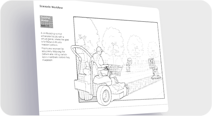 Workflow A landscaoir enhances hs job with a virtual game, where the is to follow a virtua mapped pattern. F'onts are received .for accurately following the pattern and 'lifting certain score multipliers before he disappear.