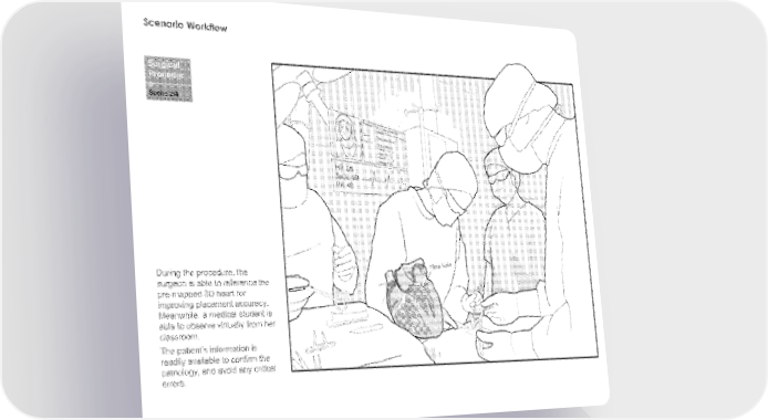 Scenario Workflow Duhng the procedure, the surgeon is able to reference the pre-mapped 3D heart for improving placement accuracy. Meanwhile, a medical student is ..... ...... .... able to observe virtually from her classroom.. The patient's information is readily available to confirm the pathology; and avoid any critical errors.