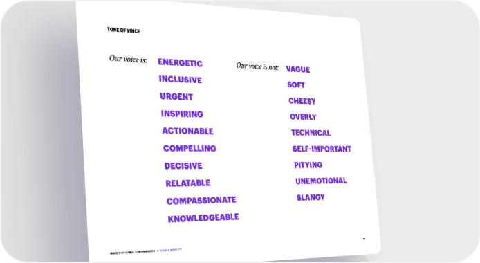 15 TONE OF VOICE ENERGETIC INCLUSIVE URGENT INSPIRING ACTIONABLE COMPELLING DECISIVE RELATABLE COMPASSIONATE KNOWLEDGEABLE VAG UE SOFT CHEESY O V E R LY TECHNICAL SELF-IMPORTANT PITYING UNEMOTIONAL SLANGY Our voice is: Our voice is not: MARCH OF DIMES • BRAND BOOK • VERBAL IDENTITY
