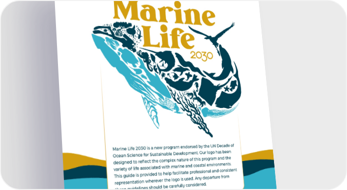 Marine Life 2030 is a new program endorsed by the UN Decade of Ocean Science for Sustainable Development. Our logo has been designed to reflect the complex nature of this program and the variety of life associated with marine and coastal environments. This guide is provided to help facilitate professional and consistent representation wherever the logo is used. Any departure from these guidelines should be carefully considered.