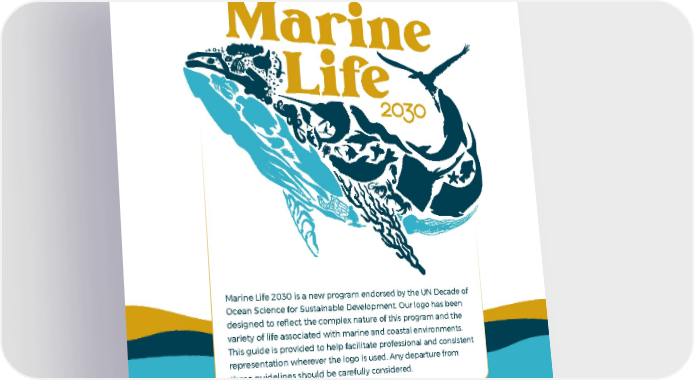 Marine Life 2030 is a new program endorsed by the UN Decade of Ocean Science for Sustainable Development. Our logo has been designed to reflect the complex nature of this program and the variety of life associated with marine and coastal environments. This guide is provided to help facilitate professional and consistent representation wherever the logo is used. Any departure from these guidelines should be carefully considered.