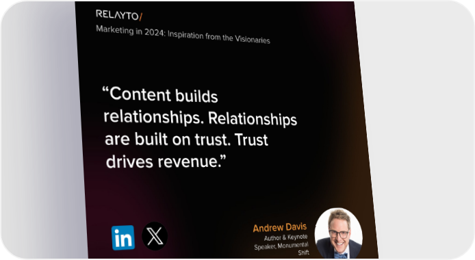 Marketing in 2024: Inspiration from the Visionaries “Content builds relationships. Relationships are built on trust. Trust drives revenue.” Andrew Davis Author & Keynote Speaker, Monumental Shift