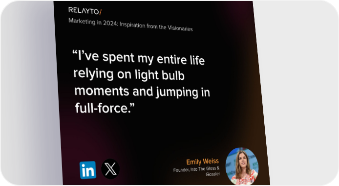 Marketing in 2024: Inspiration from the Visionaries “I’ve spent my entire life relying on light bulb moments and jumping in full-force.” Emily Weiss Founder, Into The Gloss & Glossier