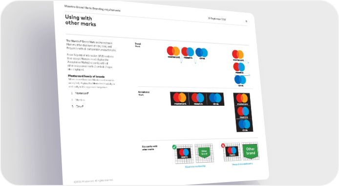 Acceptance Mark Size parity with other marks Brand Mark y y y y Other brand Other brand Equal size relationship Unequal size relationship 8 30 September 2016 Maestro Brand Mark: Branding requirements ©2016 Mastercard. All rights reserved. The Maestro® Brand Mark and Acceptance Mark must be displayed at size, color, and frequency with all comparable product marks. Note: All point of interaction (POI) locations that accept Maestro must display the Acceptance Mark(s) at parity with all other acceptance marks / symbols / logos also displayed. Mastercard family of brands When more than one Mastercard brand is accepted, display the Marks horizontally or vertically in the approved sequence: 1. Mastercard® 2. Maestro 3. Cirrus® Using with other marks